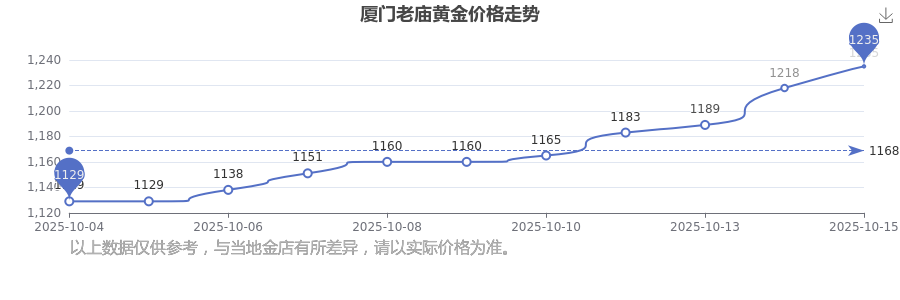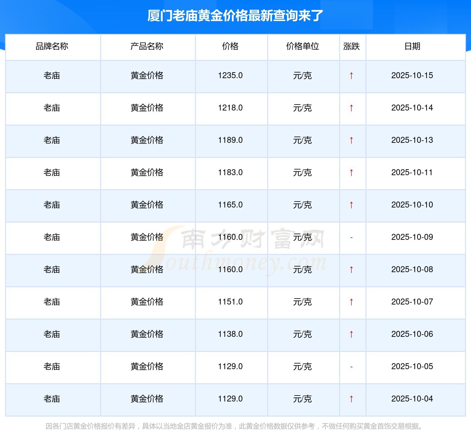1235.0元/克,此乃厦门老庙于 2025年10月15日黄金价格的挂牌价格。