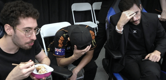 而在S赛吃“小杨生煎”可以说是一种魔咒了!2020年S10淘汰赛,FNC与TES苦战五局,最终被TES击败。而在最后一局比赛开始前,摄像机捕捉到FNC的队员们在休息室吃起了生煎,不少网友都表示这波是小杨生煎立功了,在赛后@小杨生煎也戏称自己是“场外临时应援”、“美食计”。